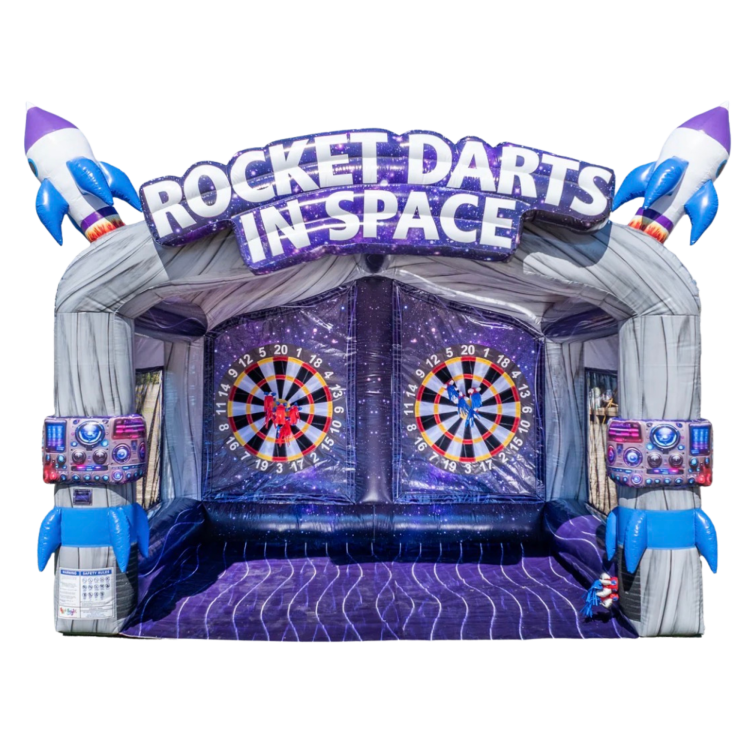 Blast off into profits with Rocket Darts in Space—our latest inflatable game designed to electrify events and energize your rental lineup. Featuring two full-size velcro dart boards, this competitive setup doubles the action and keeps guests lining up for more. Whether it’s a backyard birthday or a massive school fair, this game is a hit across all age groups.
